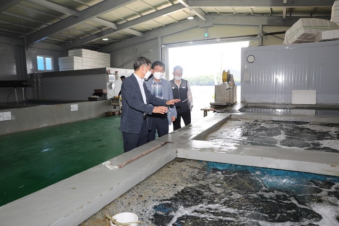 | ▲ 곽준길 해남군수 권한대행, 북평면 소재 전복 유통업체 ㈜다복 현장 방문 현안사업 점검 / 사진= 해남군 제공 |