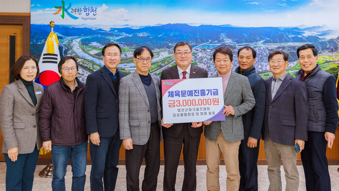 기탁금 전달 행사에는 강상열 협회장과 회원 총 7명이 참석했으며, 강상열 협회장은 “합천 체육을 더욱 활성화하고, 체육 인프라 조성에 조금이나마 도움이 되기를 바란다”며 “앞으로도 지속적으로 지역 사회와 함께 성장할 수 있는 기회를 만들기 위해 노력하겠다”고 말했다.