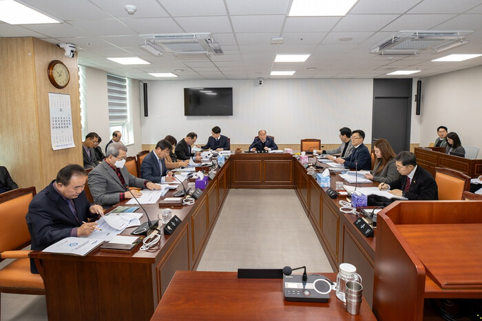 | ▲ 이성옥 해남군의장이 지난 3일 군의회 운영위원회실에서 열린 재 3차 의원간다회를 주재하고 있다 / 해남군의회 제공 |