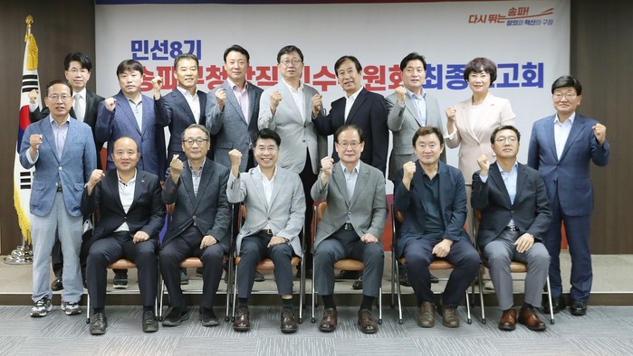 송파구청장직 인수위원회(위원장 한표환, 전 한국지방행정연구원장)는 12일 구청 대회의실에서 10일 간의 인수위원회 활동을 마무리하는 업무보고회를 열고 공약사항, 예산, 조직개편에 대해 심도 있는 논의를 갖고 불요불급한 예산 111억여 원 삭감 등을 주요 골자로 하는 내용을 제안했다.