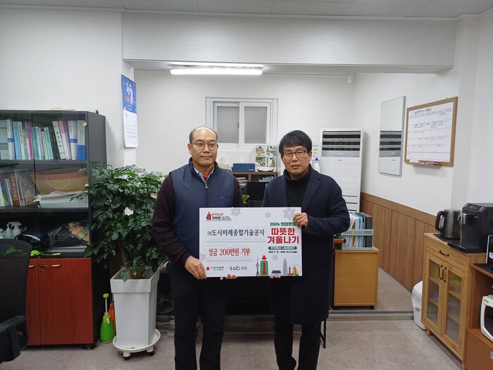 [시민일보 = 홍덕표 기자] 서울 성북구(구청장 이승로) 정릉3동에 위치한 도시계획 및 조경설비 서비스업을 전문으로하는 ㈜도시미래종합기술공사가 최근 저소득층을 위해 따뜻한 겨울나기 성금 200만 원을 정릉3동 주민센터에 기부했다.
