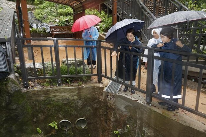 | ▲ 지난해 김미경 구청장이 태풍을 대비해 수국사 무장애숲길 취약지역 안전 점검을 하고 있는 모습. (사진=은평구청 제공) |