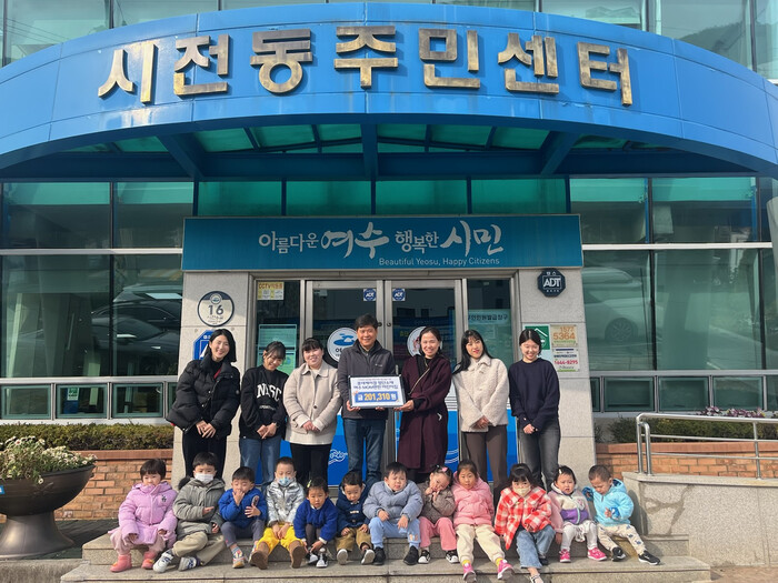 [여수=황승순 기자]롯데케미칼 첨단소재 여수 MOM편한 어린이집(원장 홍세진) 원생들이 지난 6일 시전동 주민센터를 방문해 성금 20만 1,310원을 기부했다.