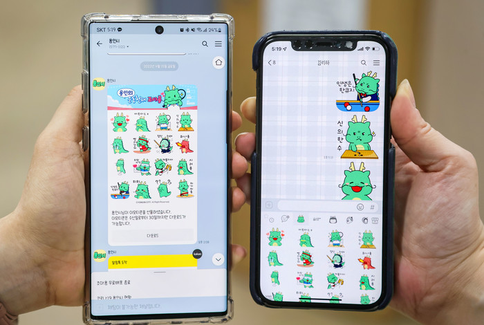 | ▲ 핸드폰으로 조아용 이모티콘을 내려받은 모습.(사진제공=용인시청) |