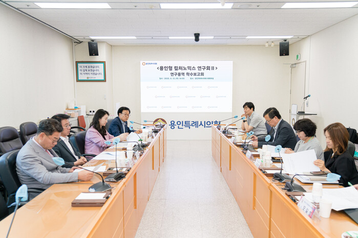 [용인=오왕석 기자] 용인특례시의회 의원연구단체 '용인형 컬처노믹스 연구회Ⅱ'(대표 김영식)가 12일 의회 4층 대회의실에서 연구용역 착수보고회를 열고 본격적인 연구 활동에 착수했다.