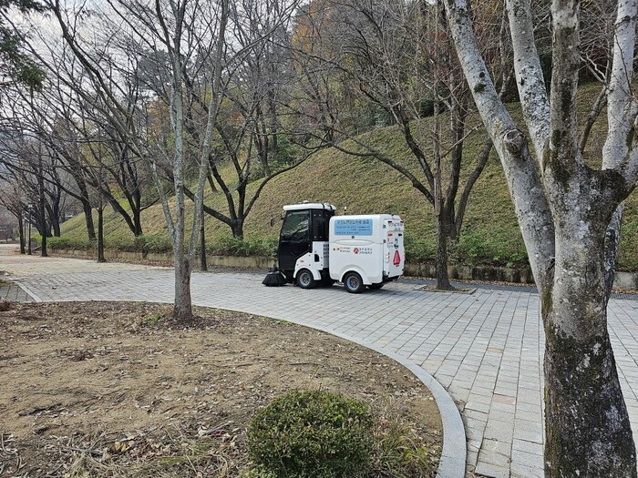 | ▲ 광주우치공원 무인 노면 청소차 실증 운행 모습 / 광주광역시 제공 |
