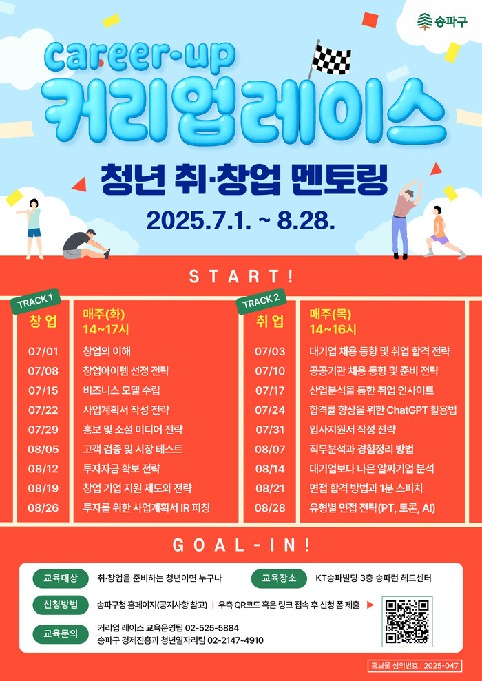 ‘커리업레이스’에 대한 자세한 정보는 송파구 누리집 또는 경제진흥과를 통해 확인할 수 있다.