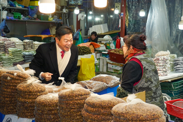 | ▲ 지난해 전통시장을 방문한 이필형 구청장. (사진=동대문구청 제공) |