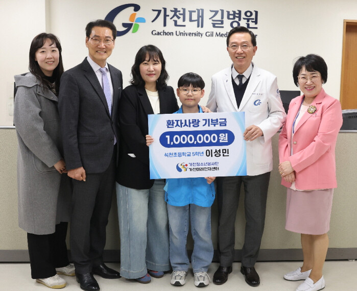 인천 남동구 석천초등학교 5학년 이성민 군(12세)은 어머니 김아름씨, 이근화 가천청소년봉사단장과 8일 가천대 길병원을 방문, 김우경 병원장에게 100만 원을 전달했다.