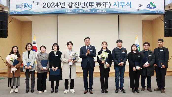 이날 시무식은 국민의례, 표창 수여, 진병영 군수 신년사, 군민가 제창 등으로 진행된 가운데 표창은 민간인과 관계기관, 함양군 기관 표창, 부서 표창, 공무원 표창 순으로 총 50건의 표창을 수여했다.