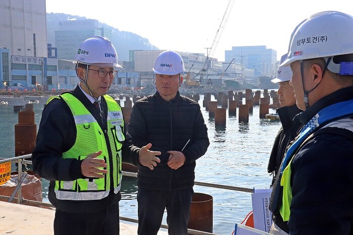 BPA 강준석 사장은 8일 일반부두 확장공사가 진행 중인 감천항을 방문해 관계자들과 함께 현장의 위험 요소와 안전수칙 준수 상태 등을 살폈다.
