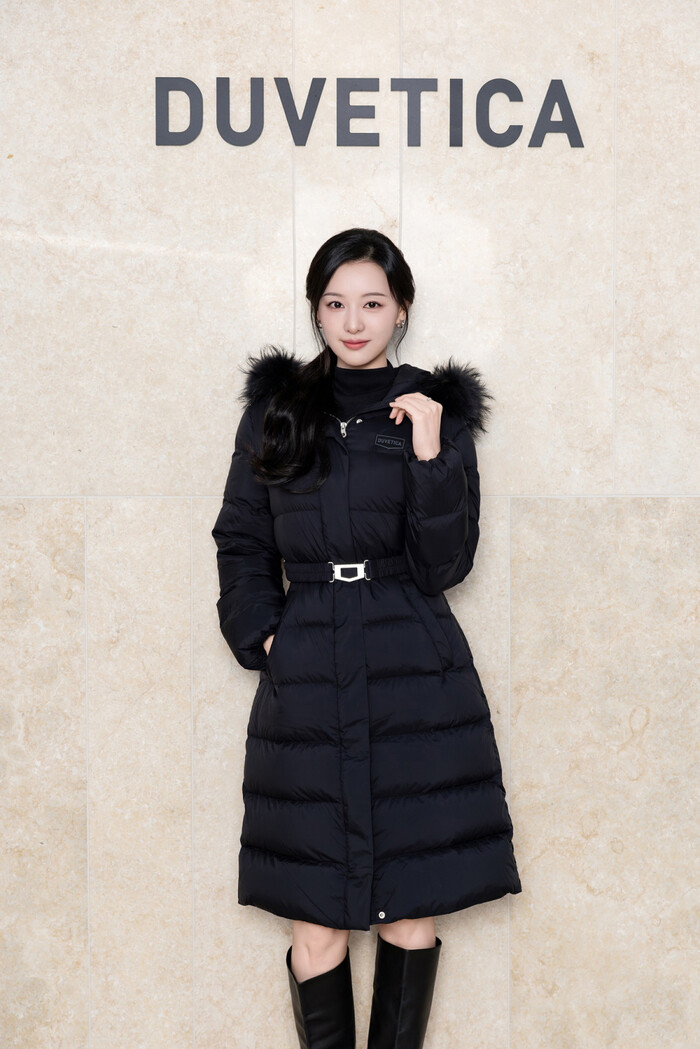 김지원은 듀베티카의 신규 아이템인 ‘마라테아’ 롱 다운 자켓을 착용하고 등장해 특유의 우아한 매력을 뽐냈다. ‘마라테아’는 듀베티카의 페미닌한 실루엣을 기반으로 뉴 매트 소재의 은은한 광택이 더해진 제품으로 극대화된 고급스러움을 느낄 수 있다. 롱 기장과 시그니처 오각 허리 벨트가 조화를 이뤄 슬림한 실루엣을 강조한다.