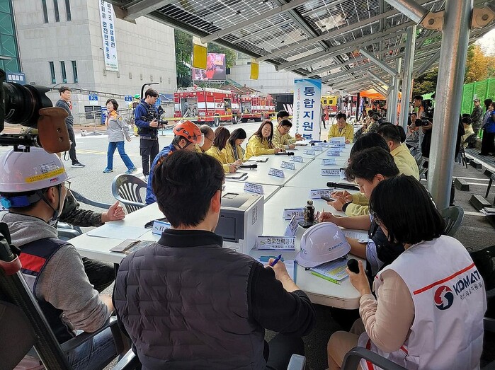 이번 훈련은 서울혁신파크 상상청에 주차된 전기차에서 화재가 발생하고 강풍으로 인해 건물화재가 산불로 확산돼 배전선 손실로 인근 아파트에 대규모 정전이 발생한다는 상황이다.