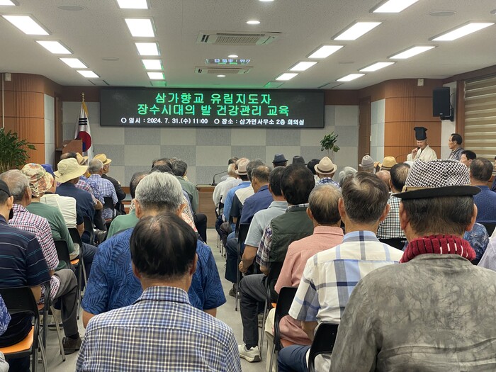 서문병관 삼가면장은 “지역문화 발전과 주민들을 위한 향교 및 유림지도자분들의 노고에 감사드리며, 이번 발 건강관리 교육이 유림지도자와 지역 주민들의 건강 관리에 큰 도움이 되길 바란다”고 말했다.