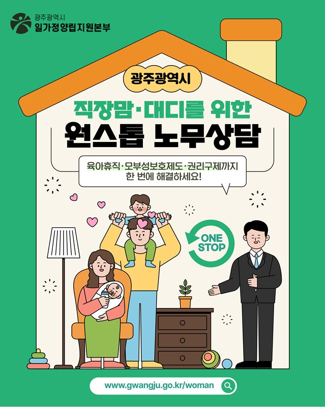 원스톱 노무상담은 일가정양립지원본부 소속 상근 노무사가 직접 상담을 진행하며 출산휴가, 육아휴직, 육아기 근로시간 단축 등 법·제도 정보를 제공한다.