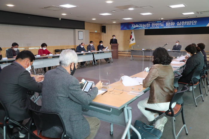 이번 회의는 ‘지속가능한 한반도 평화 실현방안’을 주제로 동영상 시청과 통일의견 수렴을 위한 토론 및 설문지를 작성하고, 2022년도 통일 사업계획 등을 논의 하는 시간을 가졌다.