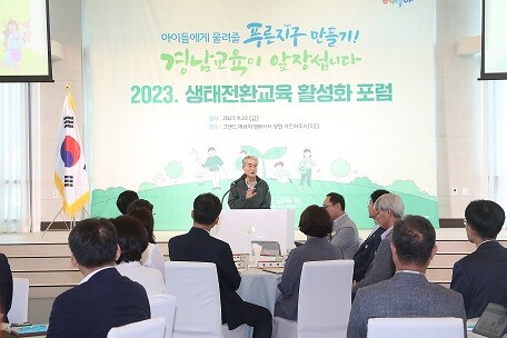 [창원=최성일 기자] 경상남도교육청(박종훈 교육감)은 22일(금) 그랜드 머큐어 앰배서더 창원에서생태전환교육 활성화 포럼을 열었다.