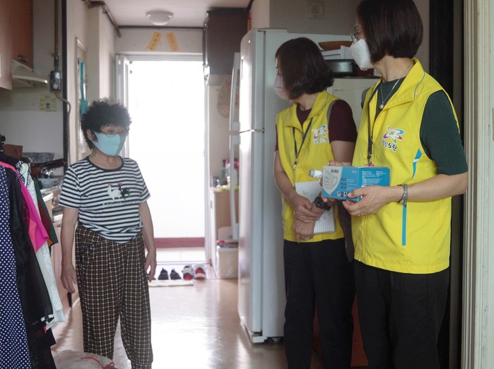 | ▲ 노원 똑똑똑 돌봄단이 중장년 1인 가구를 방문해 안부를 확인하는 모습. (사진제공=노원구청) |
