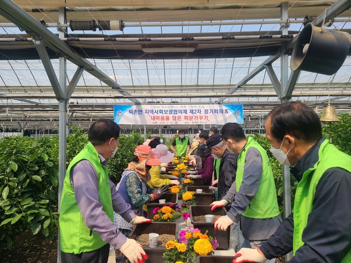 경기 광주시 퇴촌면 지역사회보장협의체는 최근 코로나19로 인해 외로움을 겪는 저소득층 홀몸노인들에게 심리적·정서적 안정감을 제공하고자 제2차 정기회의 및 ‘내 마음을 담은 화분 가꾸기’ 사업을 진행했다. 사진은 이날 대상 노인들이 반려 식물 모종을 심고 있는 모습. (사진제공=광주시청)