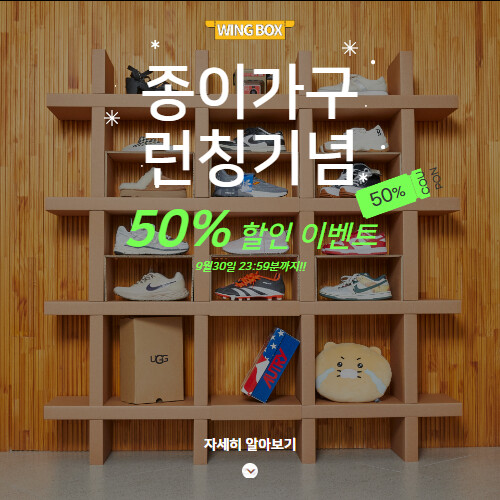 친환경 기업 날개박스가 골판지로 제작한 모니터받침대와 종이가구 4종을 출시하고 50% 파격 할인행사를 이달 30일까지 진행한다고 밝혔다.