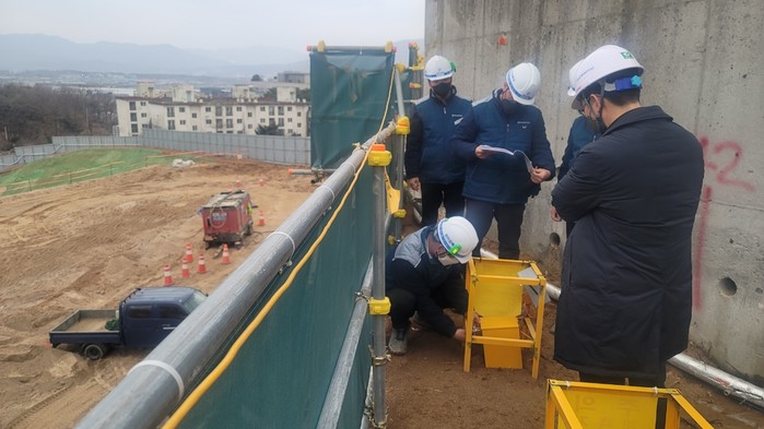 경기 포천시는 해빙기를 맞아 최근 공사가 진행 중인 공동주택 현장 등 7곳에 대해 부지 경계사면 붕괴 등 각종 안전사고 위험사항과 공사로 인한 시민 불편사항 등에 대한 점검을 실시했다. 사진은 시 관계자가 공사현장에서 안전점검을 하고 있는 모습. (사진제공=포천시청)