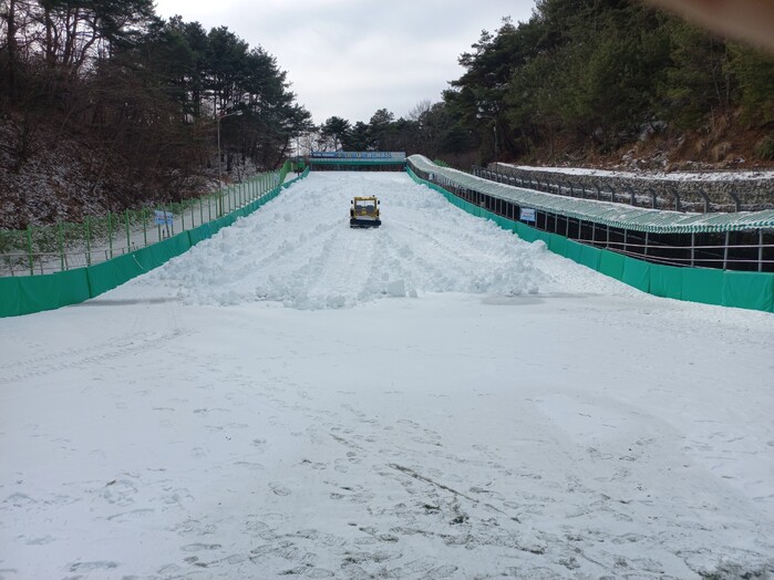 수승대 눈썰매장은 120m 길이의 슬로프와 무빙워크가 설치돼 있다.