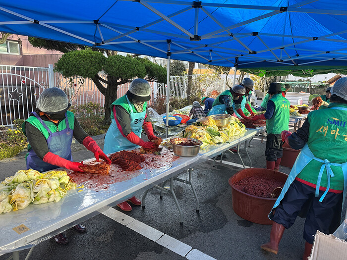 봉사자들은 구입한 배추를 소금물에 절이고 양념을 버무려 김장김치 650포기를 담가 관내 경로당 7개소와 홀로 사는 어르신, 소외계층 등 250세대에 전달했다.