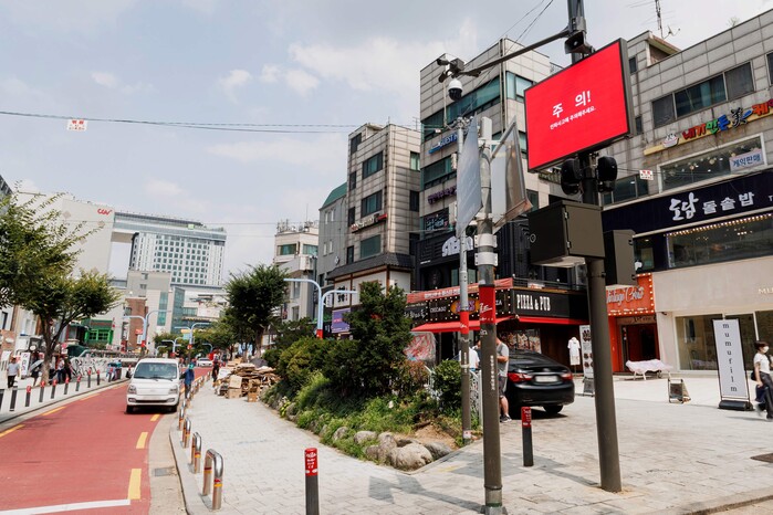 | ▲ 지난 6월 마포구가 홍대 레드로드에 구축해 운영 중인 AI인파밀집 분석시스템. (사진=마포구청 제공) |