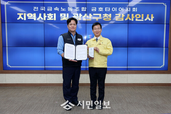정종오 전국금속노동조합 금호타이어지회(이하 금호타이어지회) 대표지회장 등 관계자들은 금호타이어 광주공장 화재라는 초유의 재난 상황에서 피해 수습, 복구, 고용 안정, 공장 재 가동 전반에 걸쳐 사태 해결을 이끈 광산구 노력에 감사의 뜻을 전하기 위해 10일 구청을 찾았다.