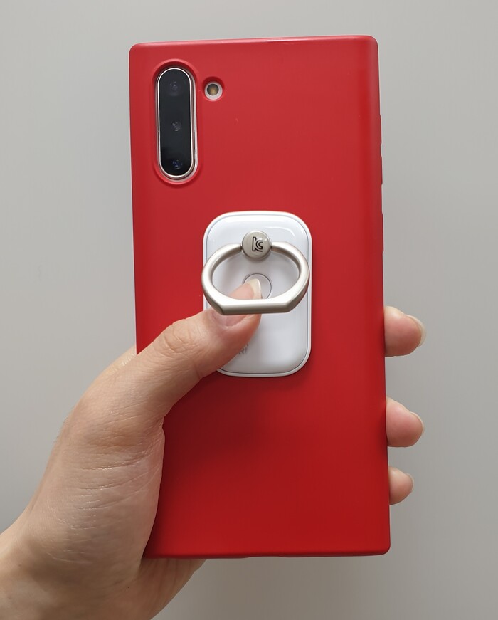 ‘서리풀 안심버튼’은 스마트폰 뒷면에 부착하는 핑거링 형태이며, SOS 비상 버튼이 내장된 범죄 예방 안전용품이다.