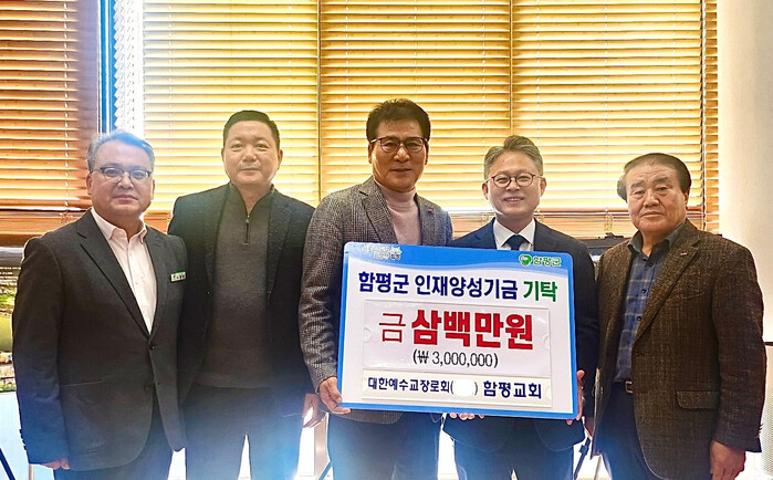 함평군 관계자는 “19일 대한예수교장로회 함평교회(목사 김운창)에서 3백만 원을 인재양성기금에 기탁했다”고 밝혔다.