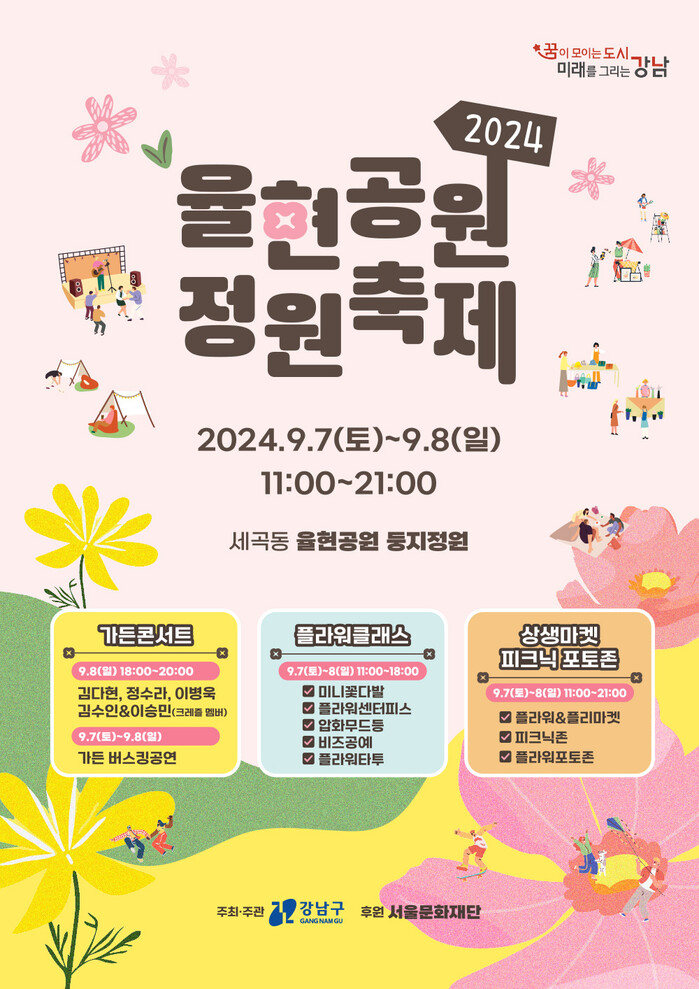 [시민일보 = 이대우 기자] 강남구(구청장 조성명)가 오는 7~8일 (오전 11시~오후 9시) 세곡동 율현공원 둥지정원에서 정원축제를 개최한다.
