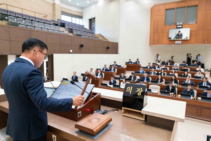 윤원균 의장은 개회사를 통해 "어느덧 상반기가 훌쩍 지나고 9월로 접어들었다. 이제부터는 연초에 계획했던 사업들이 목표한 성과를 이룰 수 있도록 점검하고 보완해 나갈 때"라며 "당면한 현안 사업이 차질 없이 마무리될 수 있도록 더욱 역량을 집중해달라"고 말했다.