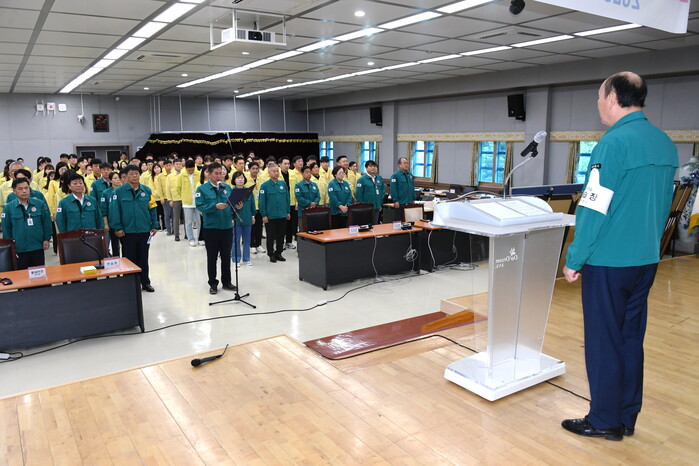 경기 동두천시가 21일 2023년 을지연습과 관련해 오전 6시에 발령된 을지3종 사태에 따라 전공무원 비상소집훈련을 실시했다. 이날 실시된 비상소집훈련은 비상소집 발령 후 전공무원 응소현황을 점검한 것으로, 같은 날 '2023년 을지연습 공무원 비상소집 응소 보고회'를 개최했다. 사진은 이날 비상소집훈련이 진행되고 있는 모습. (사진=동두천시청 제공)