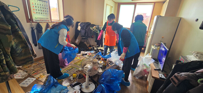 하당동 새마을부녀회와 복지기동대 회원 20명이 참여한 이날 활동에서는 냉장고 속 부패한 음식 정리, 각종 옷과 장판·이불 정리, 화장실 청소 등 오래된 쓰레기를 정리하며 건강하고 깨끗한 주거 공간으로 개선했다.