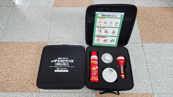 안전키트는 단독경보형 감지기와 일산화탄소 경보기, 휴대용 비상조명등, 에어로졸 소화기, 자율점검표로 구성됐다.
