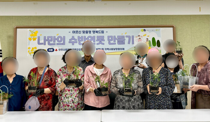 [인천=문찬식 기자] 인천 부평구(구청장 차준택) 부평6동 지역사회보장협의체는 지난 9일 홀몸 어르신 15명을 대상으로 ‘나만의 수반연못 만들기’ 수업을 진행했다.