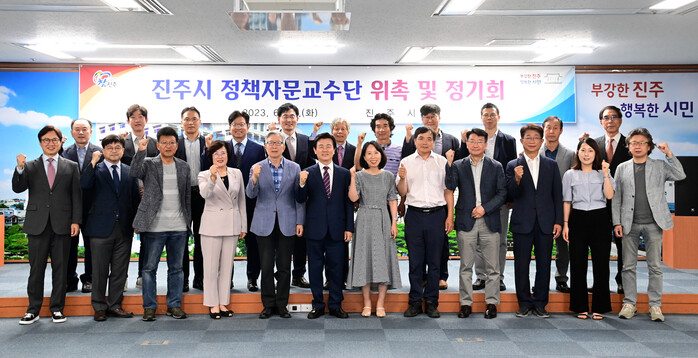 진주시 정책자문교수단은 일반행정·지역경제·문화관광·환경·보건복지·도시건설·농정의 7개 분야 29명으로 구성되어 있으며, 이날 교수단 29명이 위촉되어 2년간의 임기동안 시정전반에 걸쳐 시책 개발과 자문의 역할을 하게 된다.