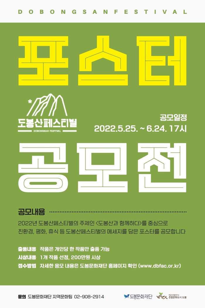 2022 도봉산페스티벌의 주제는 '도봉산과 함께하다'이며, 본 공모는 도봉산페스티벌의 의미와 주제를 살린 포스터 1점을 선정해 200만원을 수여한다.