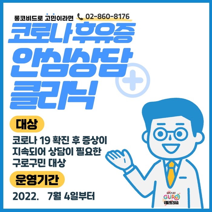 [시민일보 = 박준우 기자] 서울 구로구(구청장 문헌일)가 주민들의 일상 회복을 위해 '포스트코로나 건강돌봄서비스'와 '코로나19 후유증 안심상담클리닉'을 제공한다고 12일 밝혔다.
