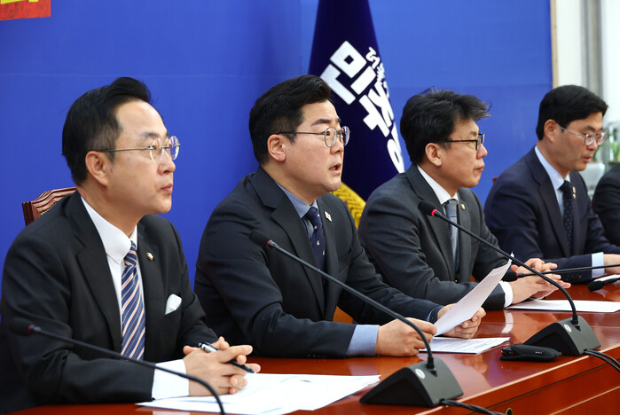 박 원내대표는 이날 오전 국회에서 열린 정책조정회의에서 “4명 중 3명이 이른바 ‘용산 출신’이고 네명 모두 현재 계급으로 승진한 지 1년이 안 됐는데도 또다시 초고속 승진한 경우”라면서 “내란 수괴 윤석열과 그 잔당들이 버젓이 활개치는 와중에 노골적인 ‘윤석열 충성파 챙기기’, ‘용산 코드인사, 보은인사’를 감행한 것”이라고 지적했다.