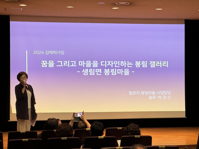 발표를 맡은 ‘지속마을’하사마을(대동면) 신정옥 부녀회장은 “2023년 김해피(Gimhaeppy)사업을 통해 주민들이 공동체 활동을 다시 시작하게 되었다. 올해는 거동이 힘드신 어르신도 쉽게 참여하실 수 있는 노래 수업과 화각 공예 등의 공동 문화 활동을 할 예정이다. 이를 통해 산업단지 개발로 삭막해진 우리 마을을 되살리고, 고령의 어르신들의 안녕을 살피는 안전한 울타리가 되어드리겠다”라고 전했다.