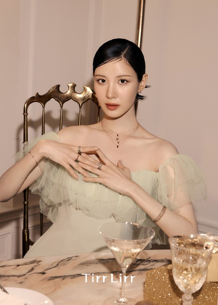 공개된 첫 번째 광고컷 속 서현은 어깨를 드러낸 드레스에 핑크 골드 소재에 다이아몬드가 세팅된 주얼리를 매치하여 우아한 룩을 선보였으며 두 번째 광고컷 속에서는 고혹적인 블랙 드레스와 골드 주얼리를 매치해 동화 속 공주님 같은 독보적인 비주얼을 선보였다.
