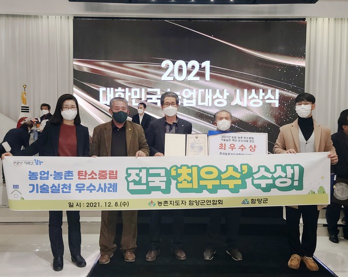 (사)한국농촌지도자함양군연합회(회장 윤종승)가 2021년 농업·농촌 탄소중립 기술실천·확산 우수사례 경진대회에서 ‘최우수상’을 수상했다.