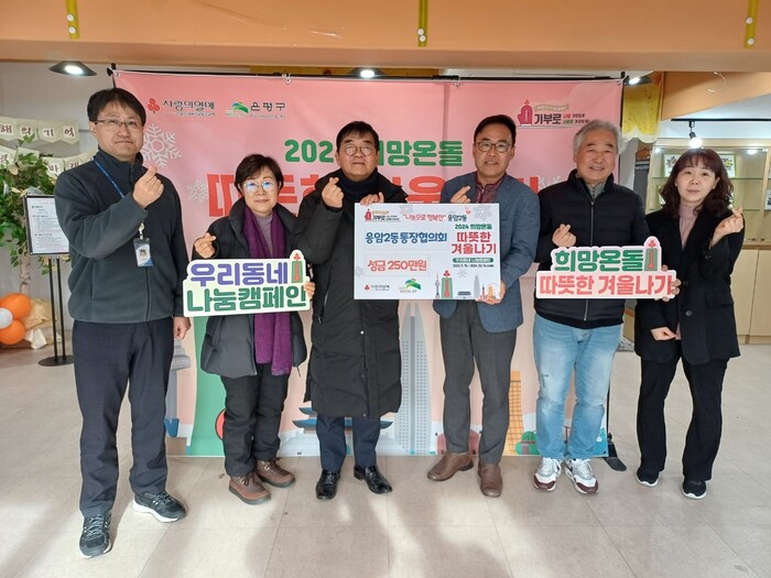 [시민일보 = 이대우 기자] 서울 은평구(구청장 김미경) 응암2동은 최근 응암2동 통장협의회와 함께 희망온돌 따뜻한 겨울나기 캠페인의 일환으로 ‘성탄 맞이 이웃돕기 성금 전달식’을 개최했다고 밝혔다.