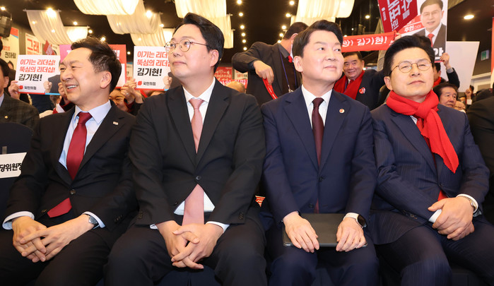 국민리서치그룹과 에이스리서치가 뉴시스 의뢰로 지난 11~13일 전국 만 18세 이상 남녀 1006명 중 국민의힘 지지층 484명을 대상으로 차기 당대표 적합도를 조사(표본오차 95% 신뢰수준에 ±3.1%pㆍ국민의힘 지지층 ±4.45%p) 한 결과 역시, 김 후보 38.6%, 안 후보 29.8%로 김 후보가 앞섰다. 뒤를 이어 천 후보 16.5%, 황 후보 10.7%로 나타났다.