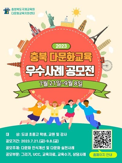[청주=최성일 기자] 충청북도교육청 직속기관 국제교육원(원장 이광우)은 함께하는 사회를 위한 인성, 민주 시민 교육과 학교 현장 다문화 교육 활성화를 위해 다문화교육 우수사례 공모전을 개최한다고 밝혔다.
