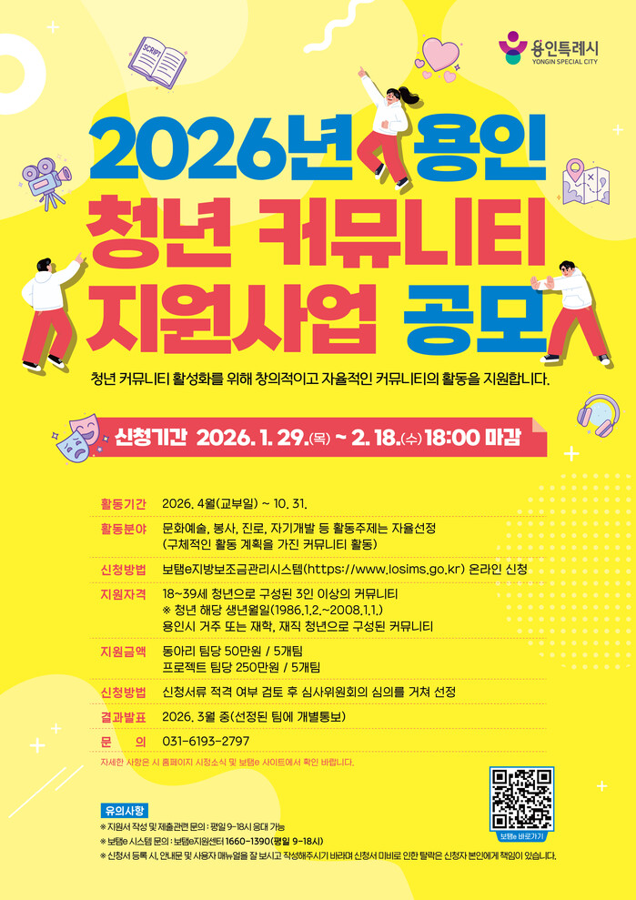 시는 3월 지원 대상팀을 최종 선정할 예정이다. 자세한 내용은 용인시 홈페이지, 용인청년포털(청년e랑), 보탬e 사이트에서 확인할 수 있다.
