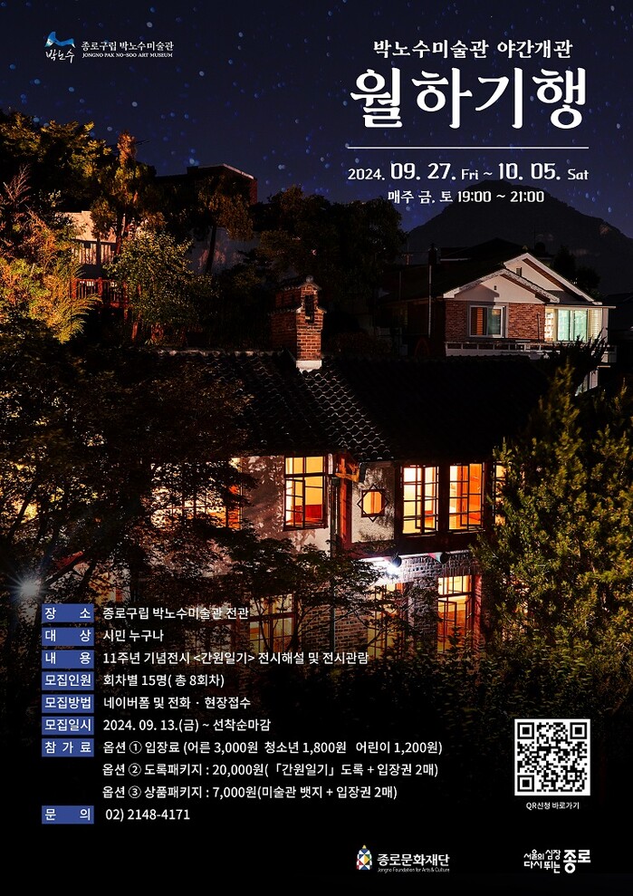[시민일보 = 이대우 기자] 종로구(구청장 정문헌)가 오는 27일부터 종로구립 박노수미술관(옥인1길 34) 야간 개관 프로그램 ‘월하기행’을 선보인다.