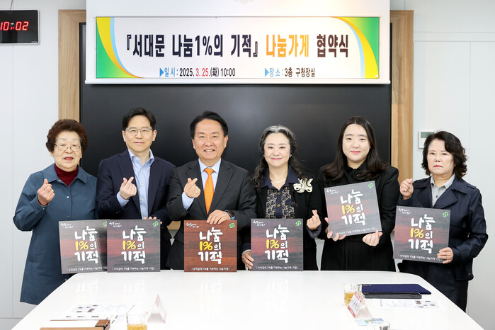 [시민일보 = 이대우 기자] 서대문구(구청장 이성헌)가 최근 구청장실에서 지역 소상공인들과 함께 ‘서대문 나눔1%의 기적’ 공동 협약을 체결했다.